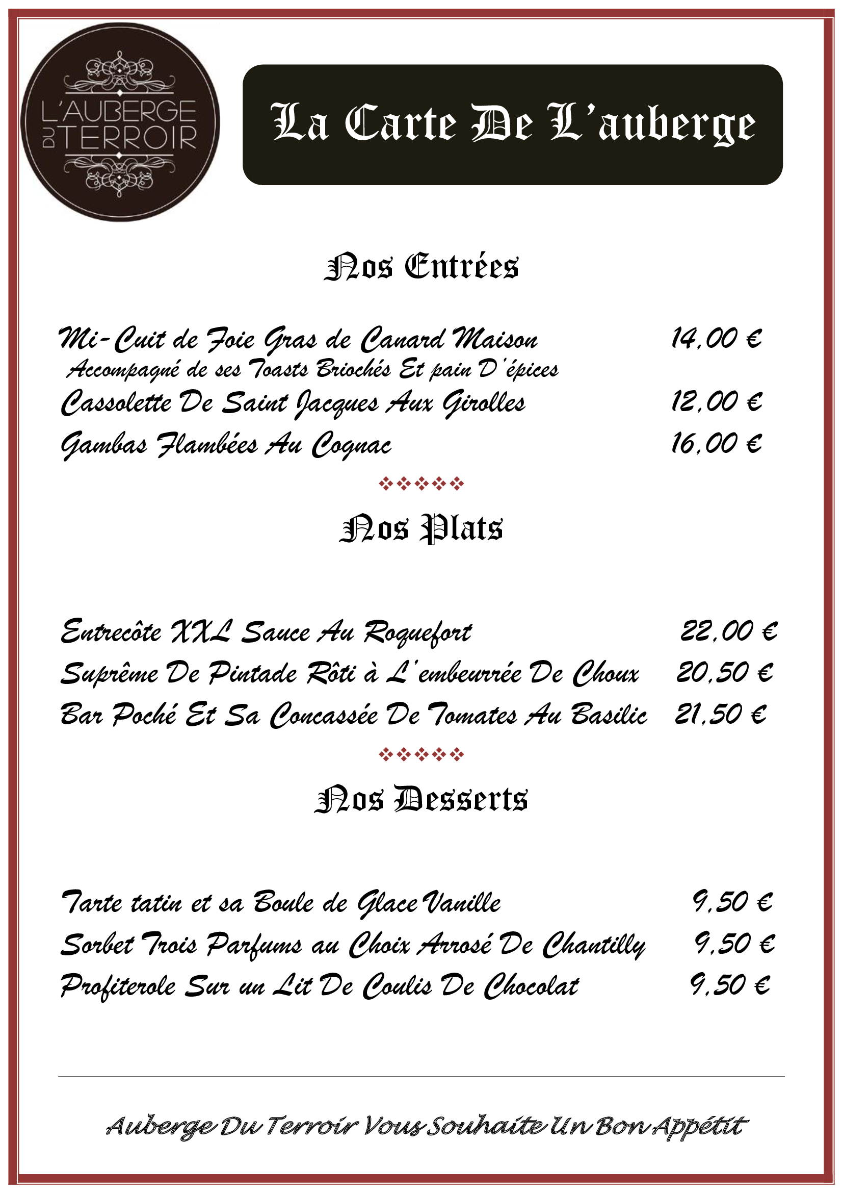 Que vous séjourniez dans l’une de nos chambres toutes équipées, que vous résidiez dans la région ou que vous soyez de passage dans notre belle ville, notre restaurant vous ouvre ses portes tout au long de l’année. Découvrez nos différents menus de cuisine savoureuse, cuisinés par notre chef et sa brigade à partir d produits de saisons et du terroir. Contactez-nous dès aujourd’hui pour réserver votre table dans notre salle spacieuse de 60 couverts, ou accédez à notre terrasse relaxante lorsque le temps le permet.